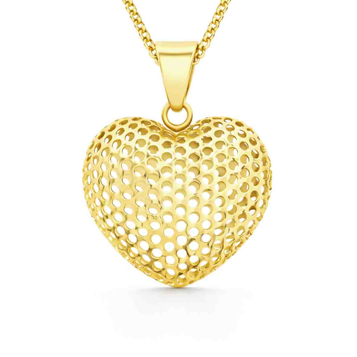Ce pendentif coeur s'associe parfaitement avec une maille forçat, une maille forçat ronde ou une maille gourmette en or jaune 9 carats. Le choix dépendra de votre préférence esthétique et du style que vous souhaitez adopter.