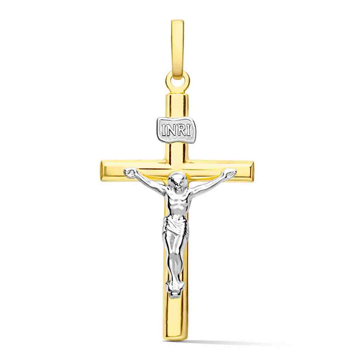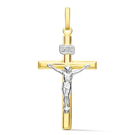 L'Expression Sacrée : Pendentif Croix Crucifix en Or 9 Carats Bicolore