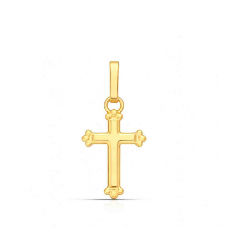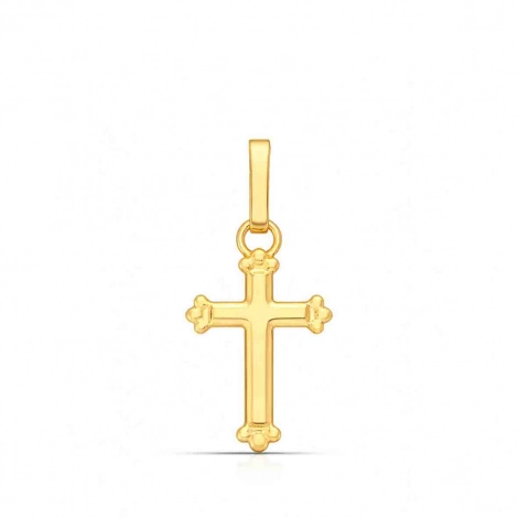 Fabriqué en or jaune 9 carats (375/1000), ce pendentif croix allie la chaleur du métal précieux à une finition soignée.