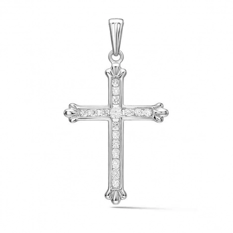 Pendentif Croix en Or Blanc 9 Carats et Oxyde de Zirconium Scintillant