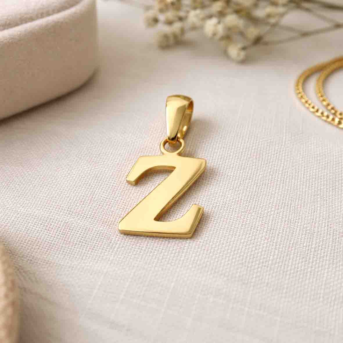 Le pendentif initiale Z est réalisé en or jaune 9 carats (375/1000), un alliage précieux offrant robustesse et beauté.