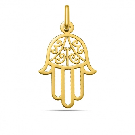 Découvrez notre pendentif Main de Fatma, une médaille religieuse intemporelle qui incarne protection et spiritualité. Gravée en or jaune pur, cette main de Fatma respire l'élégance discrète et l'authenticité. Disponible en or 18 carats ou or 9 carats, ce bijou épousera vos envies avec la même grâce. Cette médaille religieuse aux dimensions parfaitement proportionnées (18 mm de hauteur pour 13 mm de largeur) s'adapte à tous les styles et toutes les morphologies. Le poids délicat du pendentif ? 0.70 grammes en or 18 carats ou 0.55 grammes en or 9 carats ? le rend léger à porter au quotidien. La bélière généreuse de la médaille s'associe sans effort à la chaîne de votre choix.