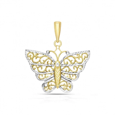 Découvrez l'élégance intemporelle du Pendentif Papillon Filigrane, une création raffinée en or 9 carats qui incarne la délicatesse et la féminité. Ce bijou exceptionnel allie deux ors précieux dans une composition harmonieuse, offrant une profondeur visuelle captivante.