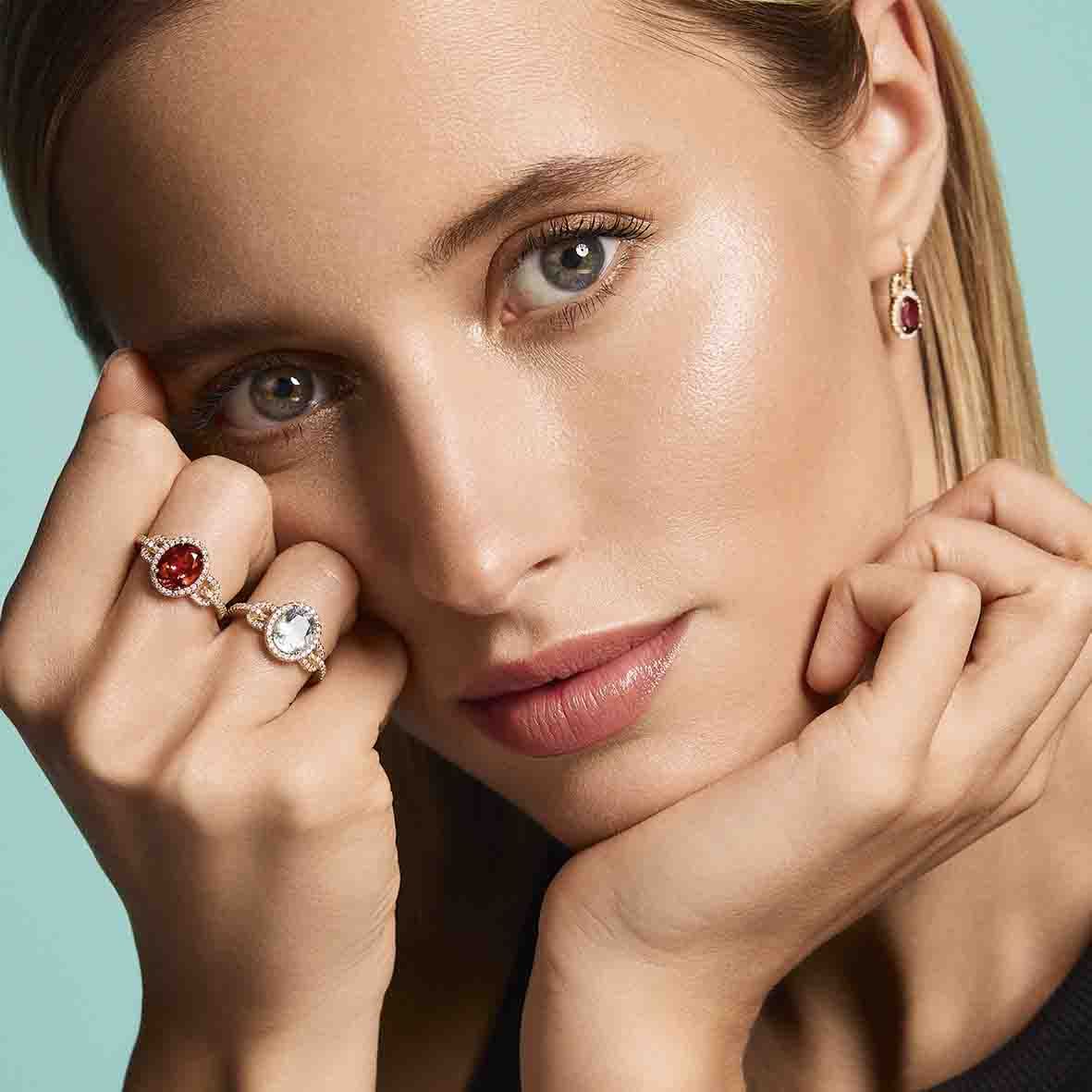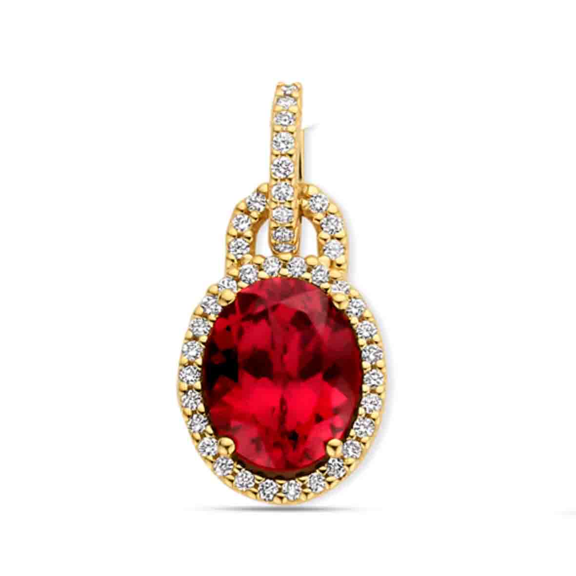 Pendentif Aigue marine et diamants en Or jaune 18 ct 41 Diamant(s) taille brillant 0.16 ct 1 Rhodolite 2.6 ct Taille 20 mm Largeur 9.5 mm Poids 2.4 gr