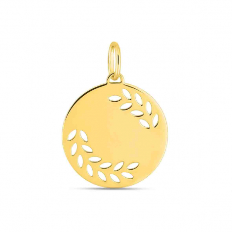 Pendentif Rond Or Jaune 18 Carats avec Motif Feuille Ajourée