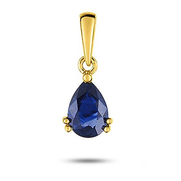 Pendentif saphir en or jaune de 18 carats Le saphir bleu en forme de poire est serti 3 griffes dont deux sont doublées. La bélière est mobile laissant la possibilité de faire passer la chaîne de votre choix.