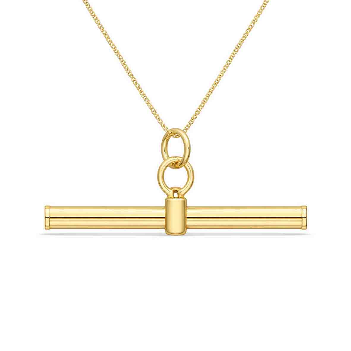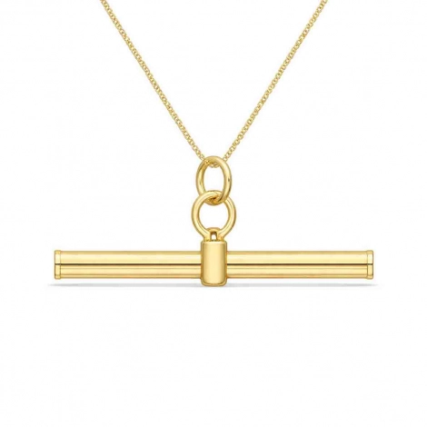 Absolument, ce pendentif T en barre en or jaune 9 carats a été conçu pour les femmes en quête d'une pièce minimaliste, moderne et intemporelle à porter au quotidien.