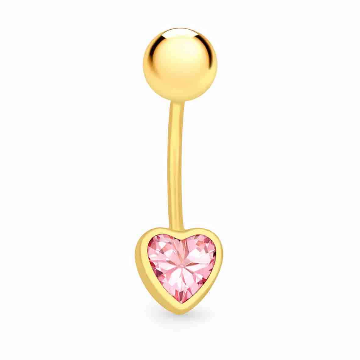 Piercing Nombril Coeur - Oxyde de Zirconium Rose en Or 9 Carats