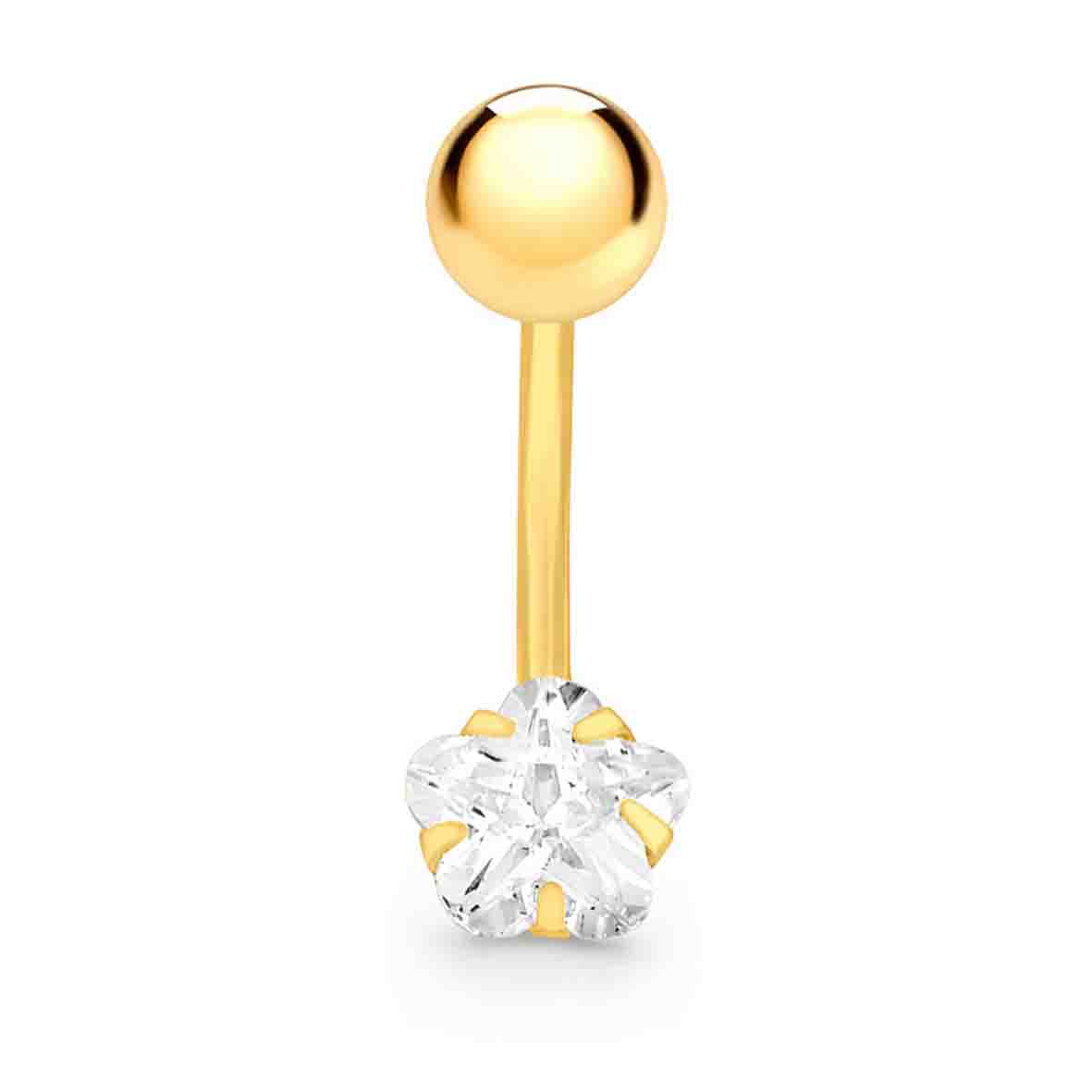 Illuminez votre ventre avec ce sublime piercing nombril en forme d'étoile, une création délicate alliant l'élégance intemporelle de l'or 9 carats à la brillance captivante de l'oxyde de zirconium. Ce pendentif nombril féminin se distingue par son design épuré et séduisant, parfait pour les femmes en quête d'accessoires de mode sophistiqués et tendance.