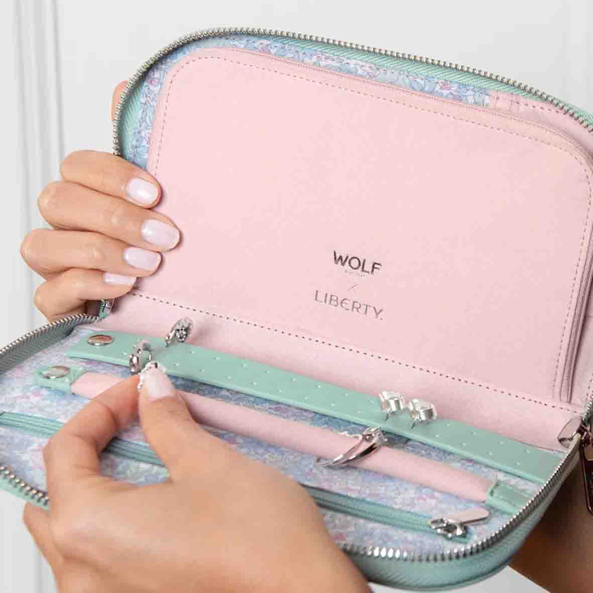 Portefeuille de Bijoux Wolf 1834 - Wolf X Liberty Travel Jewellery Portfolio - Vert Pastel