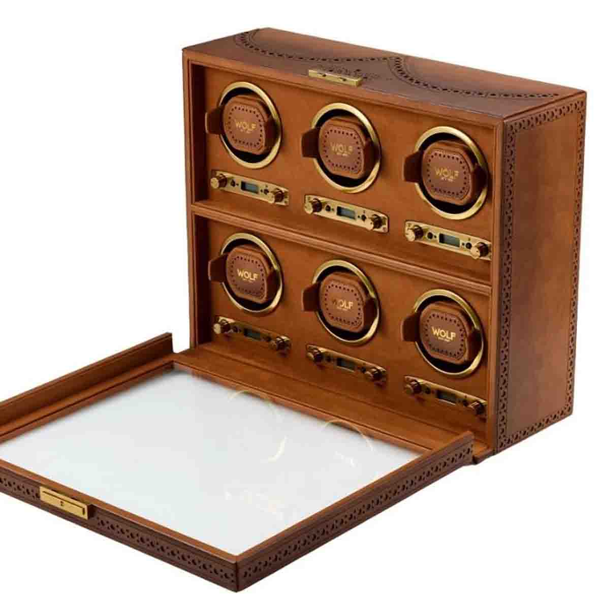 Ce remontoir montre Wolf 1834 est conçu pour ranger et remonter jusqu'à 6 montres simultanément, offrant une solution idéale pour les collectionneurs passionnés.