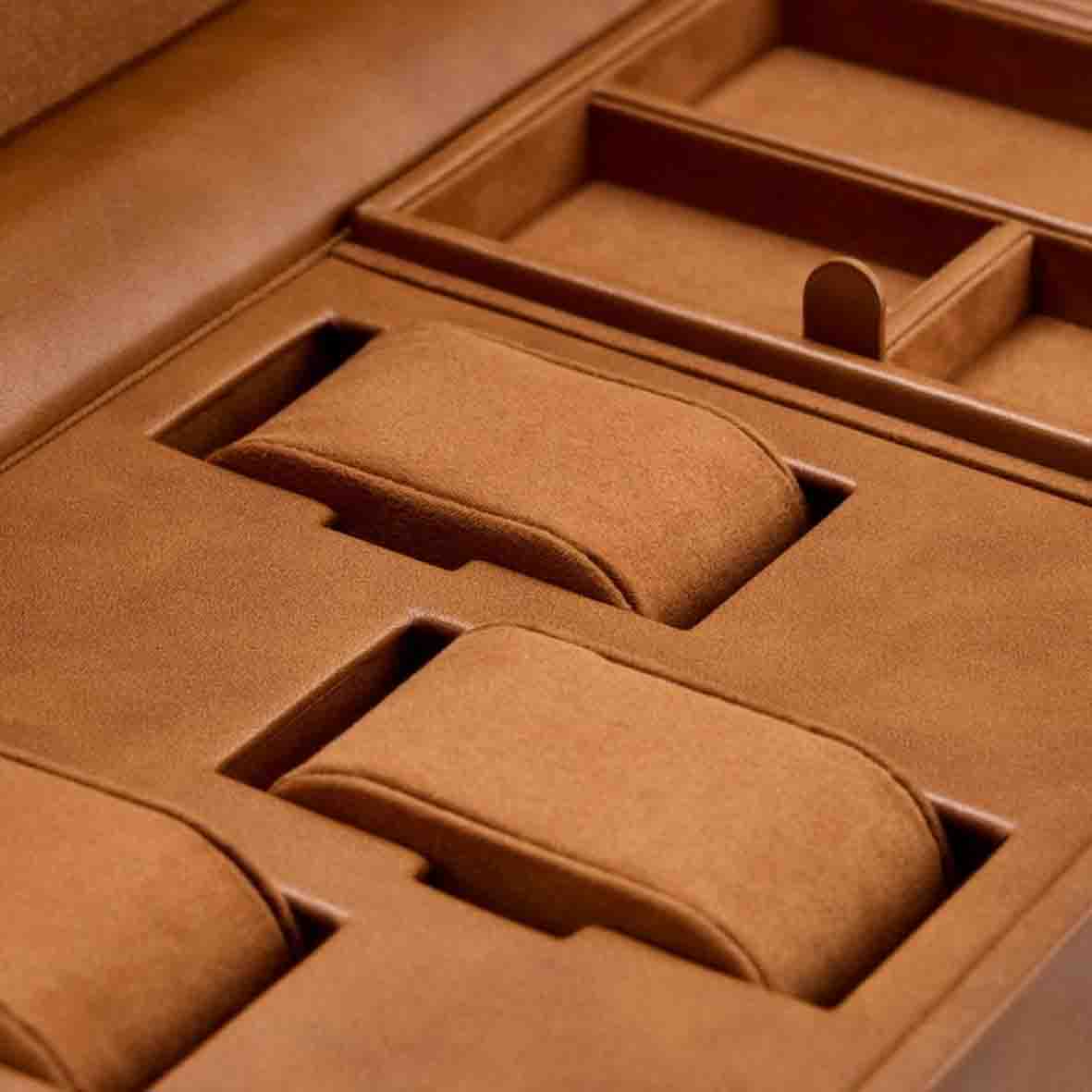 Avec ses dimensions généreuses de 34 cm de longueur, 21 cm de largeur et 22,5 cm de hauteur, ce remontoir s'installe élégamment sur votre commode ou votre meuble de nuit. Sa finition marron brun confère une atmosphère chaleureuse et sophistiquée, sublimant la présentation de vos montres tout en préservant leur mécanisme. Le design Brogue Double de Wolf 1834 reflète une attention particulière aux détails et au savoir-faire horloger, garantissant à vos pièces de collection un repos aussi beau qu'efficace.