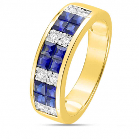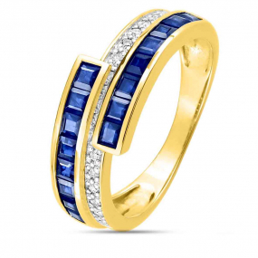 Bague Saphir et Diamants en Or Jaune Lushai -063920SA